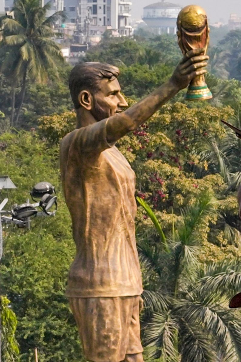 The first stop was Kolkata, where Messi -- who is fresh from captaining Inter Miami to a historic MLS Cup triumph -- traveled to the Sree Bhumi Sporting Club in Lake Town in order to take part in a meet-and-greet session before unveiling a gigantic new statue that has been installed in the district.